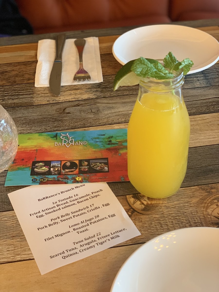 Aji amarillo tiger's milk, passion fruit, avocado, aji limo and choclo